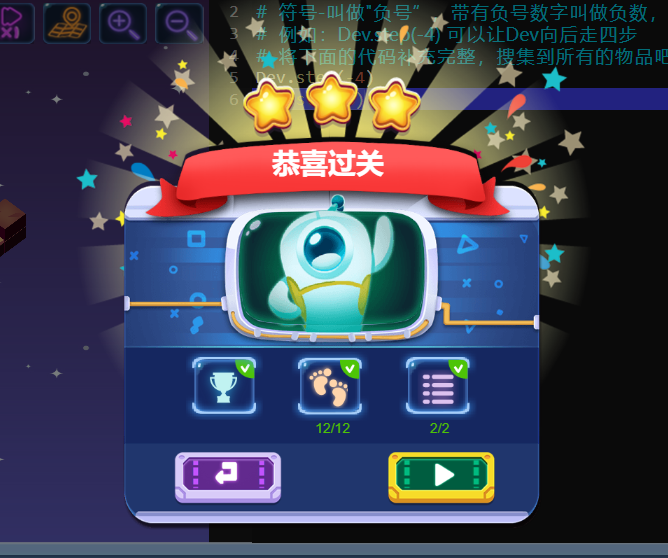 三星即为满分,要是出现得星相同的情况,那就进一步对比步数与积木块(或代码行数),谁用的数量越少,谁的排名就越靠前。